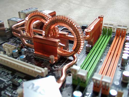 前のマザーも性能良かったんですが、この龍がのたうち回ってるような放熱パイプに惚れちゃったということと、MTV-2000という古く(?)面積の広い(要はでっかい)テレビキャプチャーボード使ってるんで、他の製品ではボードが刺さらなかったんですね(x_x)