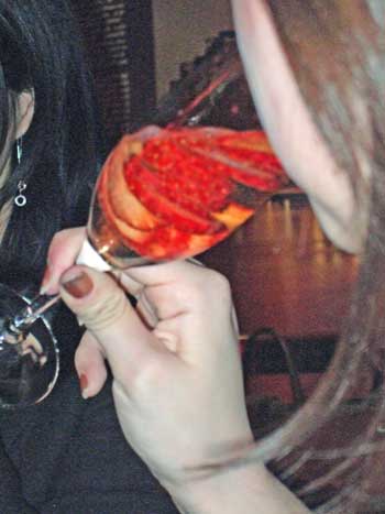 イチゴシャーベットがシャンパンに溶けて味が多彩に楽しめる。