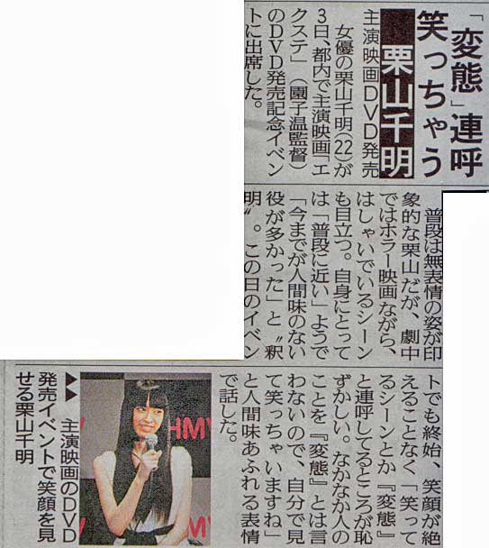 栗山千明が「変態!」連呼!主演映画「エクステ」DVDをPR goo 映画 (サンケイスポーツ) |