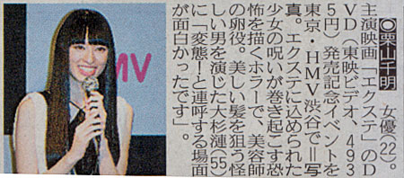 8月3日(金)HMV渋谷店で行われた栗山千明主演映画「エクステ」DVD発売イベント。