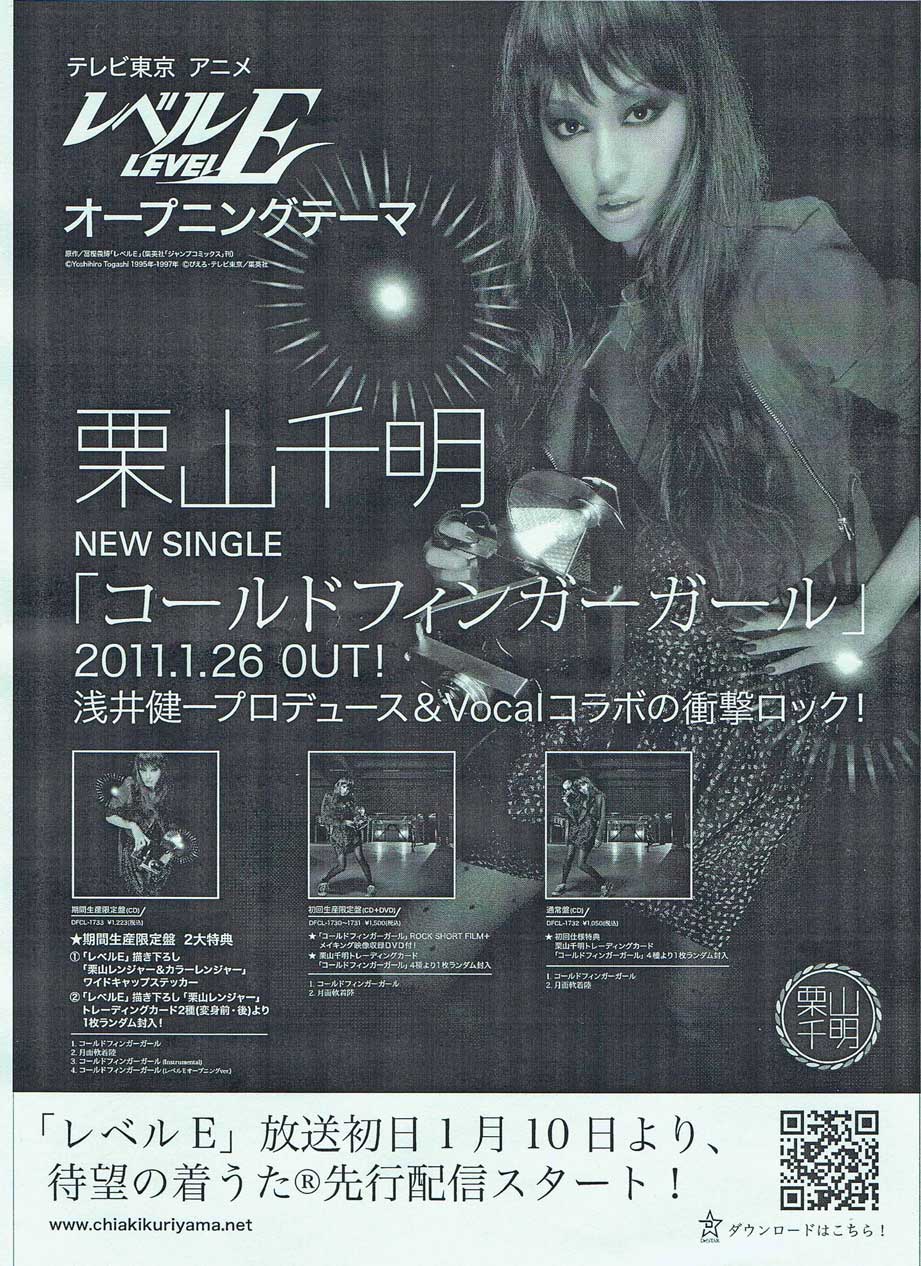 こちらのミュージック・ビデオは1月26日に発売される「コールドフィンガーガール」の初回生産限定盤DVDに収録、さらにCD発売に先駆け、オフィシャル・サイト(http://www.chiakikuriyama.net/)では1月12日(水)より順次公開されるとのこと。注目です!