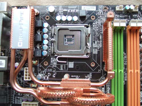 前のマザーも性能良かったんですが、この龍がのたうち回ってるような放熱パイプに惚れちゃったということと、MTV-2000という古く(?)面積の広い(要はでっかい)テレビキャプチャーボード使ってるんで、他の製品ではボードが刺さらなかったんですね(x_x)